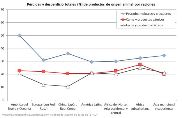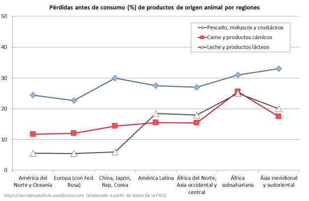 Los productos de origen animal muestran unas pérdidas globales de menor entidad que los de origen vegetal, con la excepción del pescado, debido en parte a fácil deterioro y por otras razones que se tratan posteriormente.