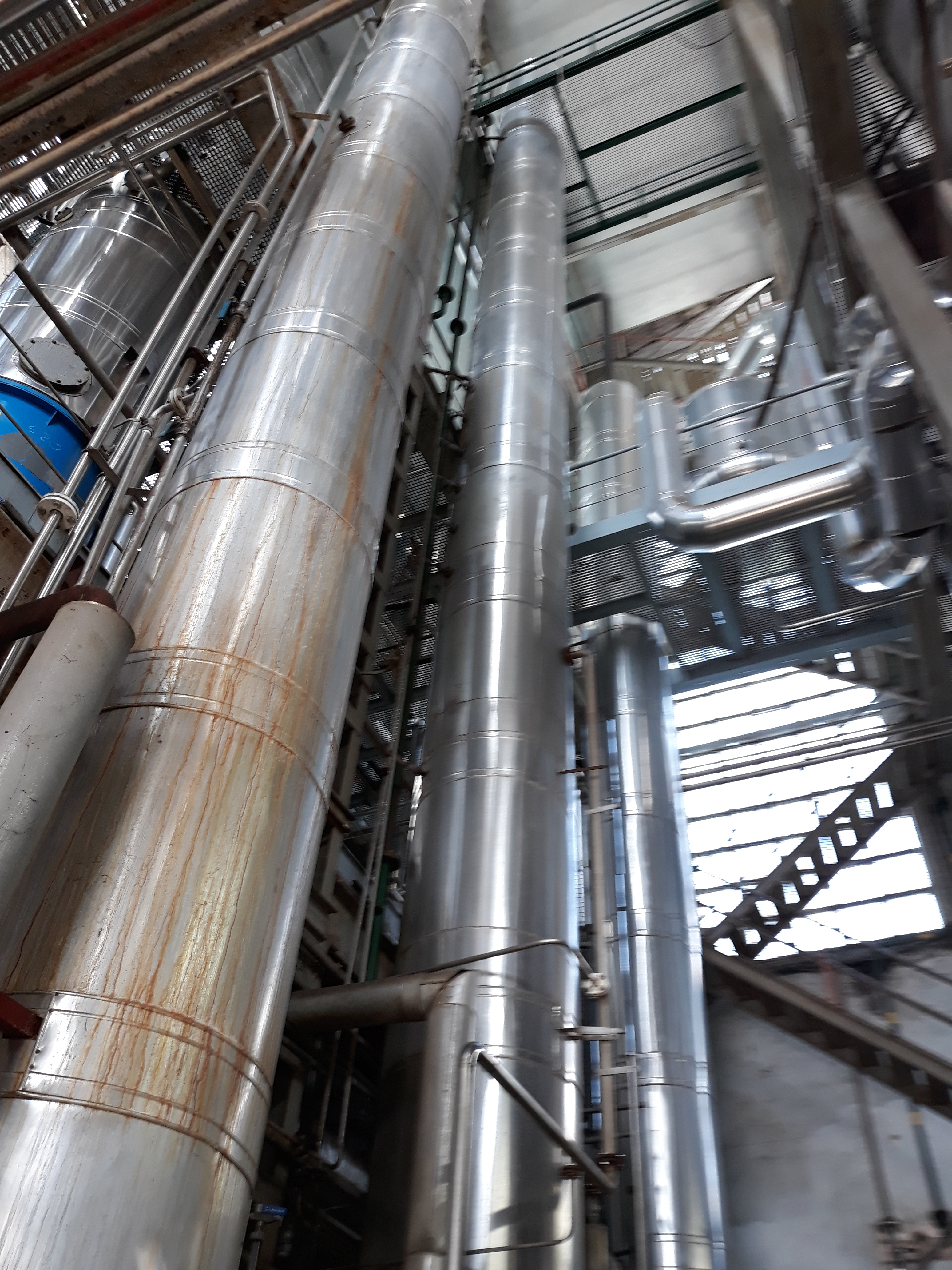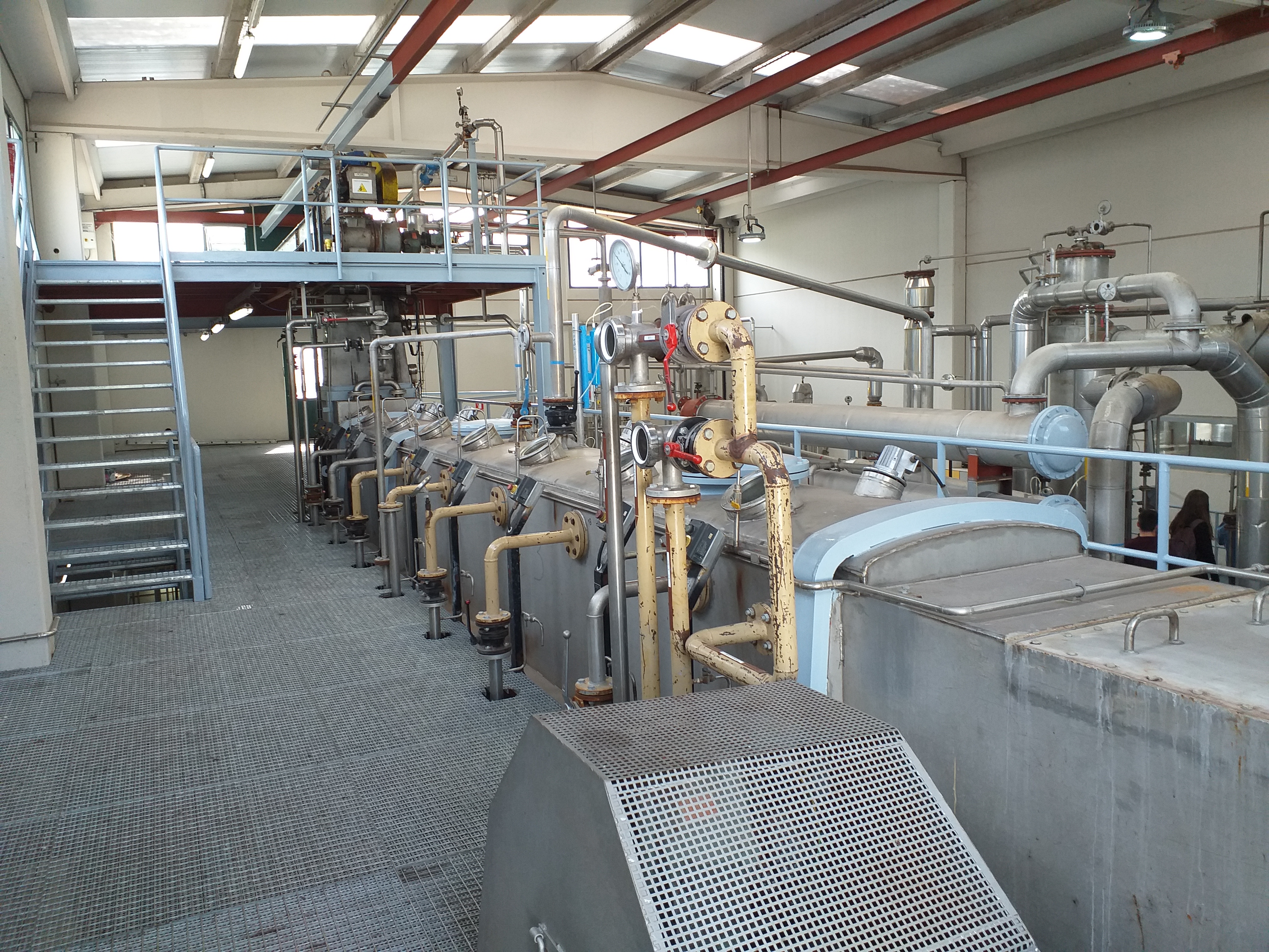 Otro proceso de optimización es el de concentración de los efluentes en un evaporador de triple efecto. Con esto se obtiene agua caliente secundaria a la que se le da uso, y se disminuye notablemente el volumen de efluentes a depurar.