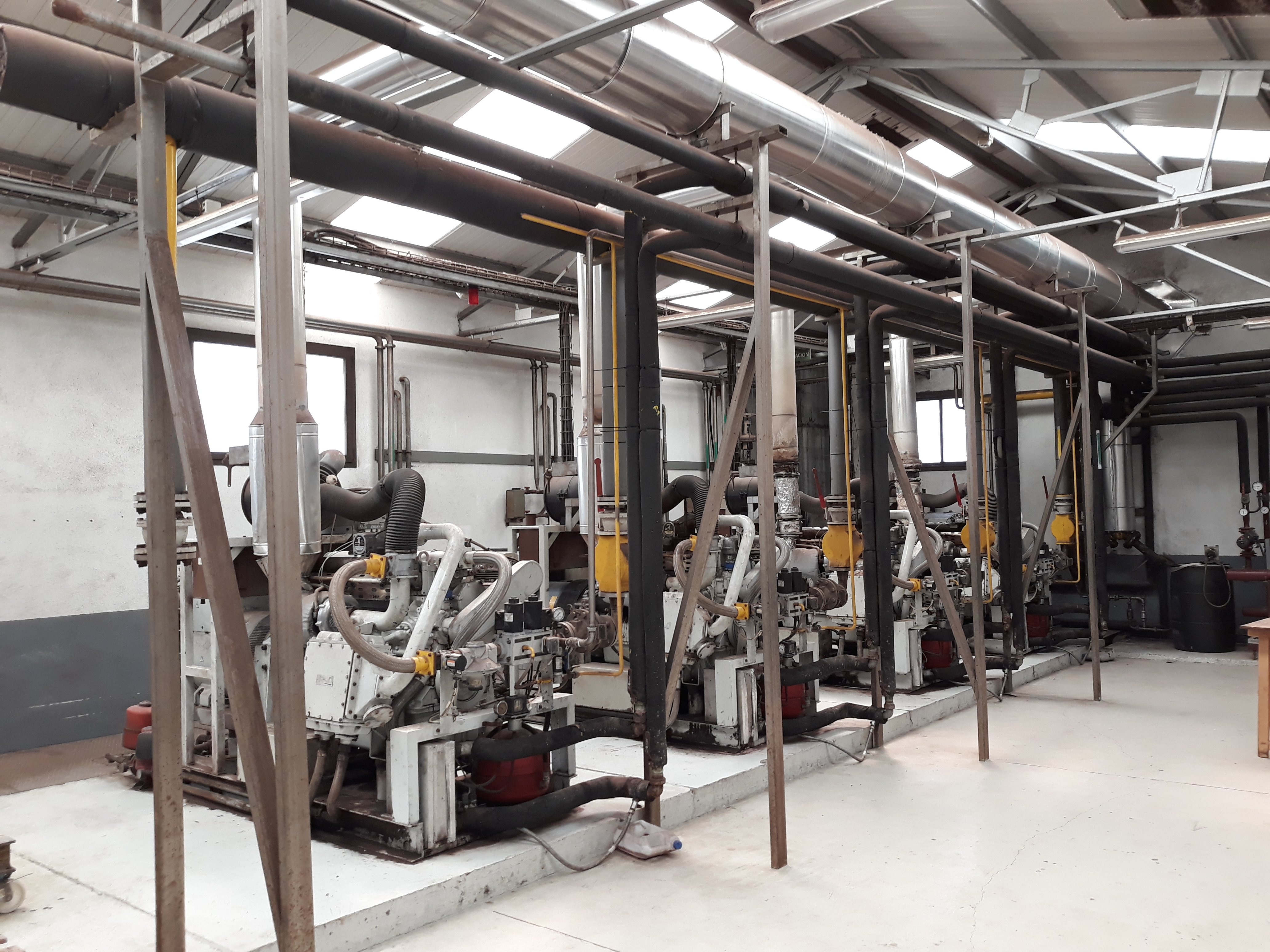 En primer lugar, el biogás generado en la digestión anaerobia se utiliza como combustible en varios motores de cogeneración en los que se obtiene electricidad, agua caliente y gases de combustión que son aprovechados en el secado de los tartratos de calcio. Nada menos que 3/4 partes de la electricidad consumida en la planta proceden de esta fuente. Esto supone un ahorro anual de más de 2.600.000 kWh.