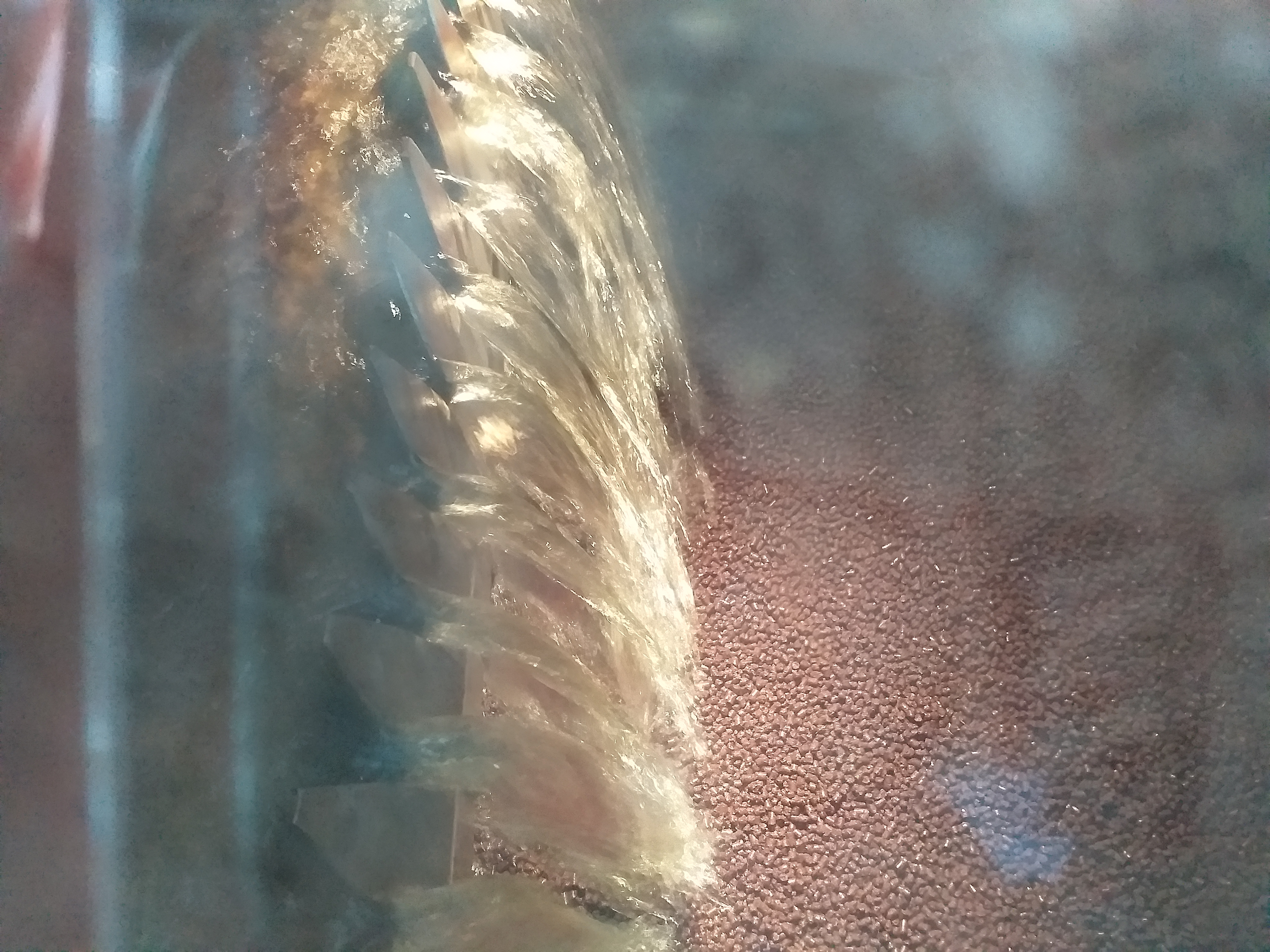 - Vista del hexano cayendo sobre los pellets de pepitas de uva
