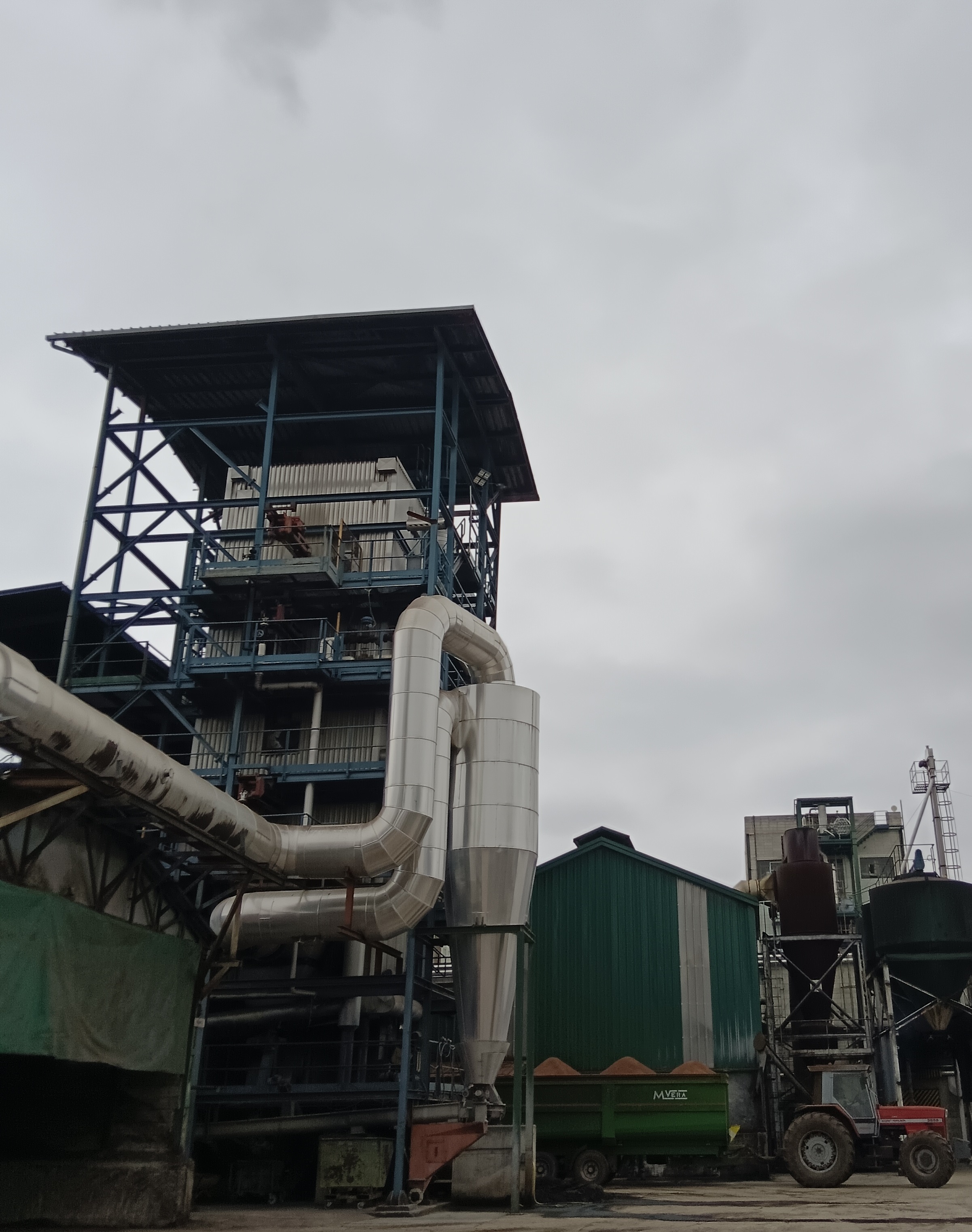 Por otro lado, los hollejos deshidratados (14.700 toneladas) y parte de la harina de pepitas desengrasadas (8.000 toneladas) se someten a combustión en una caldera de biomasa. Antes de ser evacuados, los gases de combustión generados son aprovechados para la generación de vapor, y también para el secado de los orujos.