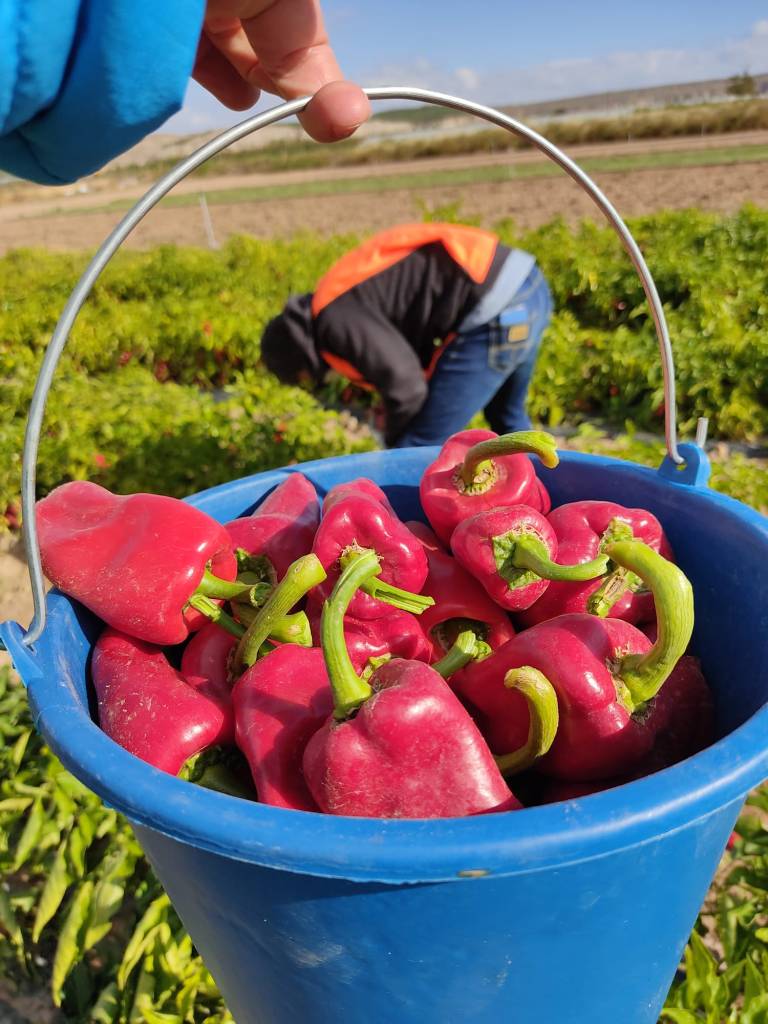 Imagen tomada durante un espigamiento de pimientos en el Proyecto Buruxka. El informe de WWF (2021) cuantifica las pérdidas de alimentos en el campo, a diferencia del informe de la FAO (2019), que no las contempla en la determinación del Índice de Pérdidas de Alimentos.