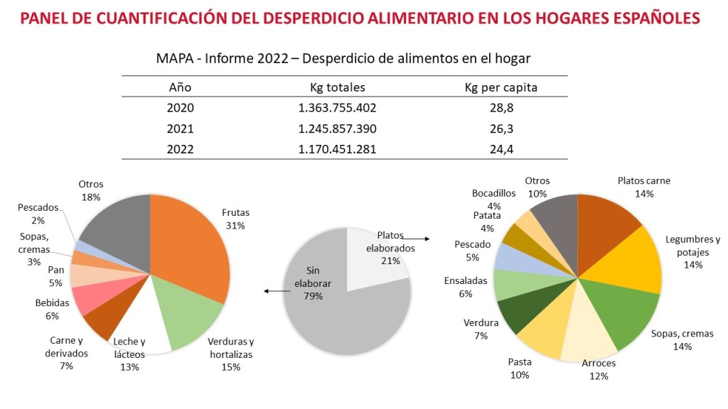 Figura 1. Principales datos del informe 2022 del MAPA sobre desperdicio de alimentos en los hogares españoles