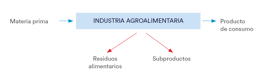 El cuestionario se plantea de forma que la industria alimentaria se configura como una «caja negra» en la que el balance de materiales sería el determinado por la figura siguiente, extraída del propio informe. Esta forma simplificada de abordar el asunto me parece completamente acertada, y es la misma que hemos utilizado en estudios propios como el descrito en una entrada previa relativa a losresiduos y subproductos de la industria alimentaria en Navarra.